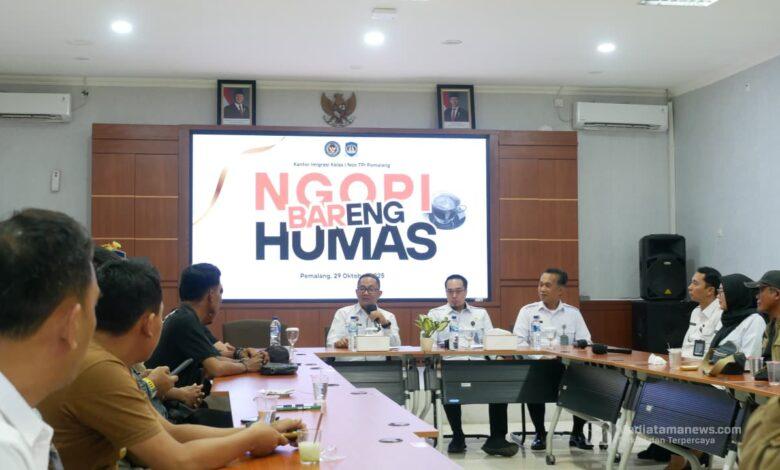Mediatamanews | Pemalang – Kantor Imigrasi Kelas I Non TPI Pemalang menggelar kegiatan Ngopi Bareng Humas bersama media dari berbagai Platform, mulai dari media cetak, online, hingga televisi dan dihadiri langsung oleh Bapak Kepala Kantor Wilayah Ditjen Imigrasi Jawa Tengah Bapak Haryono Agus Setiawan.