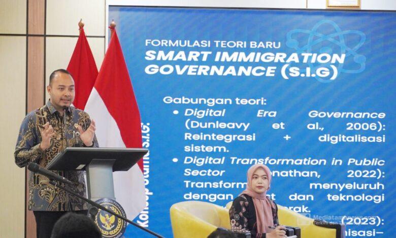 Dalam paparannya, konsep tersebut diperkenalkan sebagai pendekatan keimigrasian berbasis smart governance yang relevan dengan dinamika transformasi digital. Pendekatan ini menekankan bahwa transformasi digital keimigrasian tidak hanya bertumpu pada sistem dan teknologi, tetapi juga memerlukan integrasi peran petugas, pemahaman pengguna layanan, serta tidak mengesampingkan fungsi keamanan dan pengawasan.