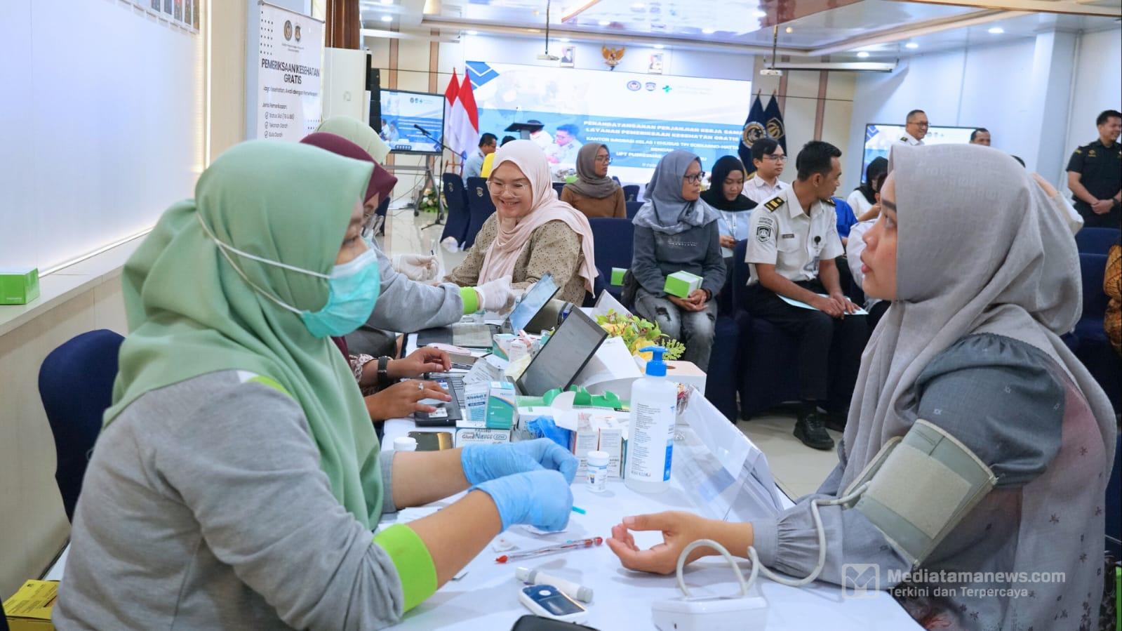 Mediatamanews|Tangerang – Kantor Imigrasi Kelas I Khusus TPI Soekarno-Hatta melaksanakan kegiatanPemeriksaan Kesehatan Gratis bagi 150 peserta yang terdiri atas 100 pegawai dan 50 warga sekitar, sekaligus melakukan penandatanganan Perjanjian Kerja Sama dengan UPT Puskesmas Jurumudi Baru sebagai wujud konkret pelaksanaan Program Aksi Kementerian Imigrasi dan Pemasyarakatan Republik Indonesia Tahun 2026.