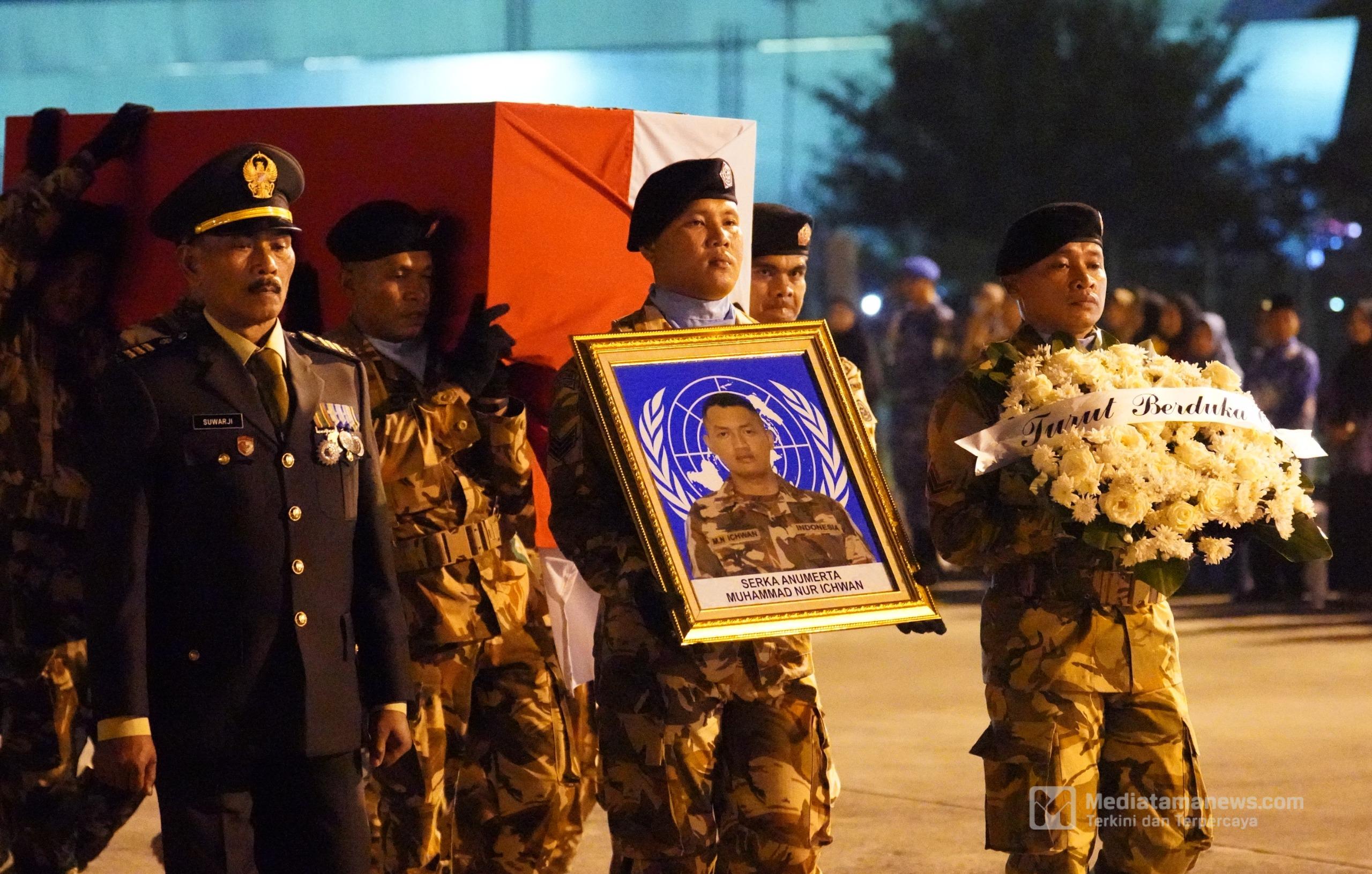 “Hari ini kita menerima kepulangan jenazah tiga prajurit terbaik bangsa yang gugur dalam pelaksanaan tugas sebagai Pasukan Penjaga Perdamaian PBB di Lebanon. Kami sangat kehilangan. Mereka adalah putra-putra terbaik yang kami pilih untuk melaksanakan tugas perdamaian,” ujar Kasad.