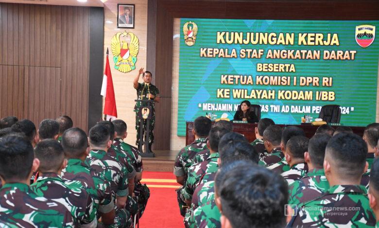Hal tersebut terungkap dalam keterangan pers Kasad, yang didampingi Ketua Komisi I DPR RI, usai bertatap muka dengan personel jajaran Kodam I/Bukit Barisan di Makodam I/BB, Medan, Sumatera Utara, Selasa (13/2/2024).