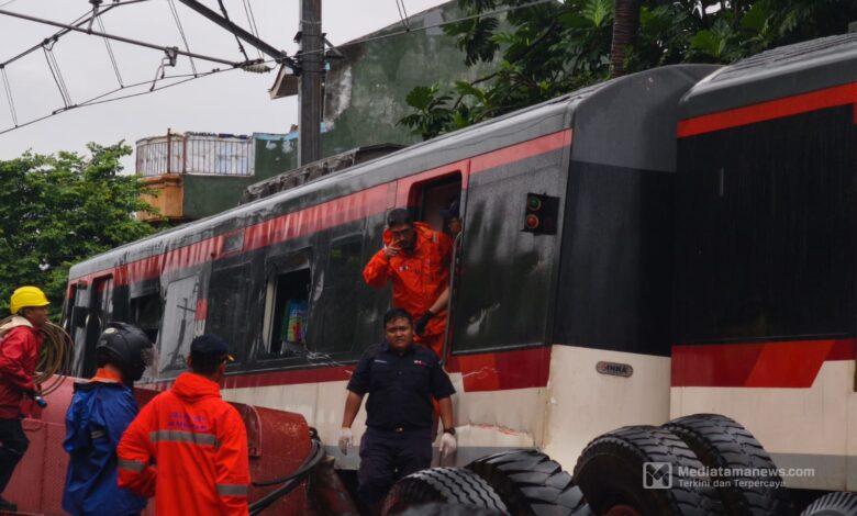 KERETA COMMUTER LINE BASOETTA TERTEMPER TRUK DI STASIUN PORIS/ PERJALANAN TERBATAS DAN PENUMPANG DIEVAKUASI