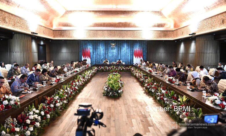“Ini adalah Sidang Kabinet terakhir dari Kabinet Indonesia Maju dan pada kesempatan yang baik ini saya ingin menyampaikan ucapan terima kasih yang sebesar-besarnya untuk kerja keras, dedikasi, dari Bapak/ Ibu semuanya dalam menjalankan pemerintahan, dalam melaksanakan program dan visi presiden dan wakil presiden dalam menghadapi berbagai tantangan-tantangan yang ada,” ungkap Presiden Joko Widodo.