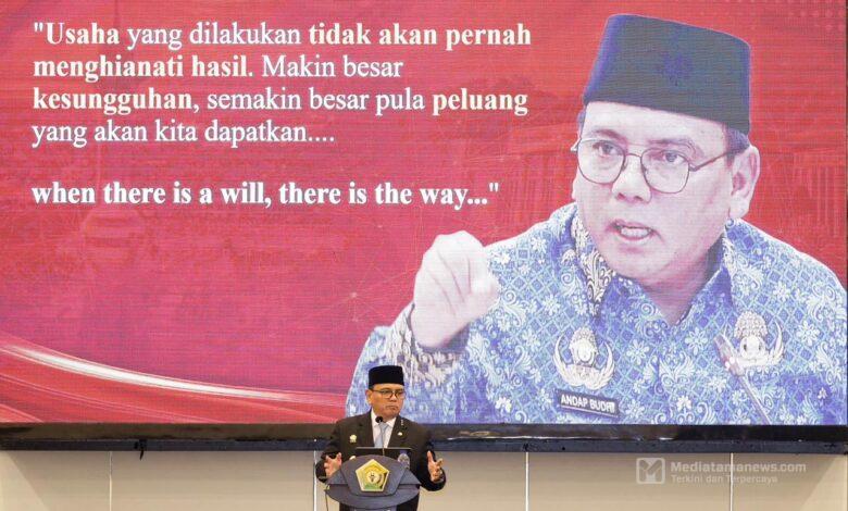 “Dengan mengutamakan pemerintahan yang bersih, efisien, dan melayani masyarakat, terdapat upaya konkret untuk lebih menghemat penggunaan APBD, mengurangi perjalanan dinas, serta melibatkan masyarakat dalam perancangan program-program pemerintah daerah,” tegas Andap dalam arahannya.