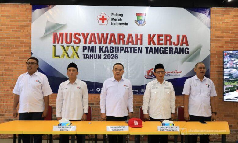 Mediatamanews|Kabupaten Tangerang – Palang Merah Indonesia (PMI) Kabupaten Tangerang menggelar Musyawarah Kerja (Muker) ke-70 atau LXX sebagai penentu arah kebijakan dan program kerja tahun 2026. Kegiatan tersebut dilaksanakan di Volunteer Park Solear, Kabupaten Tangerang, Minggu (22/02/2026).