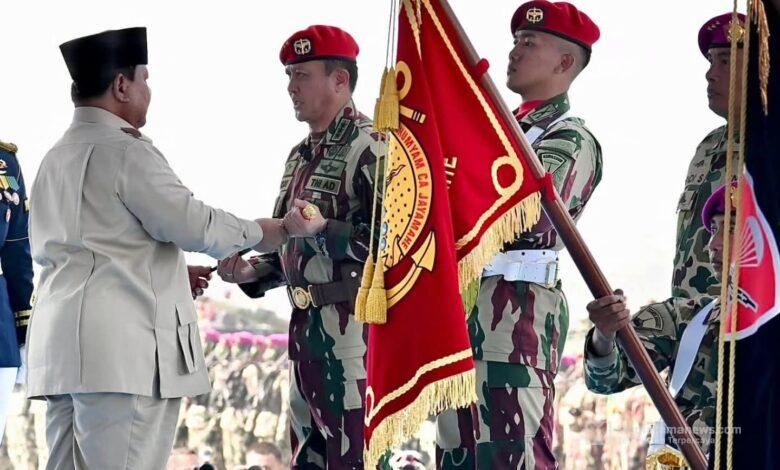 Mediatamanews | Batujajar – Presiden Prabowo Subianto bertindak selaku inspektur upacara pada Upacara Gelar Pasukan Operasional dan Kehormatan Militer di Landasan Suparlan, Komplek Pendidikan dan Pelatihan Komando Pasukan Khusus (Kopassus), Batujajar, Kabupaten Bandung Barat, Provinsi Jawa Barat, pada Minggu, 10 Agustus 2025.