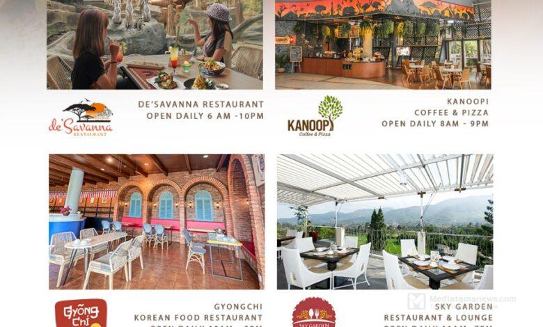 Mediatamanews|Bogor – Royal Safari Garden sebagai destinasi wisata keluarga yang menyediakan berbagai fasilitas dengan pemandangan pegunungan yang indah dan wisata kuliner dengan aneka sajian bercita rasa Nusantara, asia dan western. Mengkombinasikan sajian otentik dengan suasana yang sejuk membuat acara santap makan bersama orang tercinta akan menjadi lebih hangat dan menyenangkan. Restaurant yang ada di Royal Safari Garden memiliki pemandangan yang unik, salah satunya adalah De’ Savanna Restaurant dengan pemandangan satwa Afrika. Berikut adalah rekomendasi wisata kuliner di Puncak – Bogor dengan pemandangan unik dan rasa makanan otentik yang ada di Royal Safari Garden yang dapat di kunjungi tanpa harus menginap.
