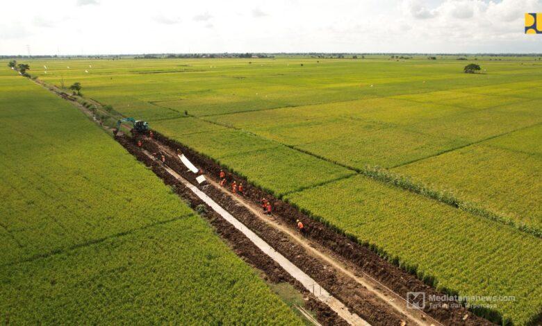 Menteri PU Dody Hanggodo mengatakan irigasi memiliki peran vital dalam mendukung swasembada pangan. “Kita mainkan di irigasi primer, sekunder, dan tersier. Itu insyaallah lebih cepat mendukung ke arah swasembada pangan,” kata Menteri Dody.